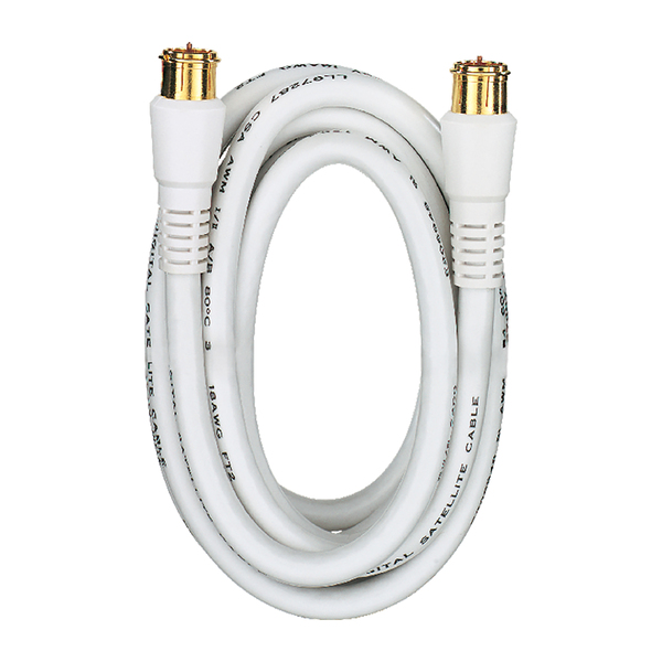 • RG6 coaxial cable with F-connectors;• Connects 75-ohm A/V source to TV, HDTV, or A/V receiver;• Carries both analog and digital RF signals;• Twice the shielding of standard RG6 cables for high-quality audio and video and optimum signal;• Corrosion-resistant gold-plated connectors;• Provides a reliable and precise connection;