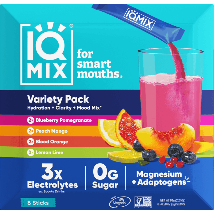 Be the first to review “IQMIX Sugar Free Electrolyte Powder Packets – Keto Electrolytes with Lions Mane, Magnesium L-Threonate, Potassium Citrate – Sampler Pack (8-Count)” Cancel reply