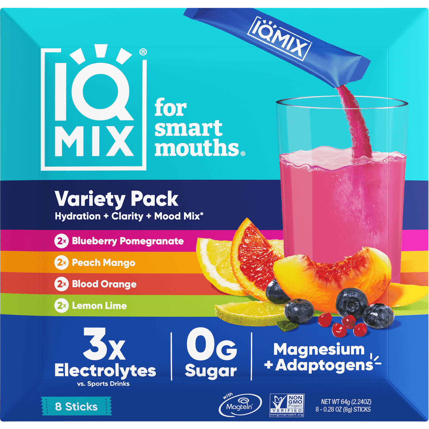 IQMIX Sugar Free Electrolyte Powder Packets – Keto Electrolytes with Lions Mane, Magnesium L-Threonate, Potassium Citrate – Sampler Pack (8-Count)